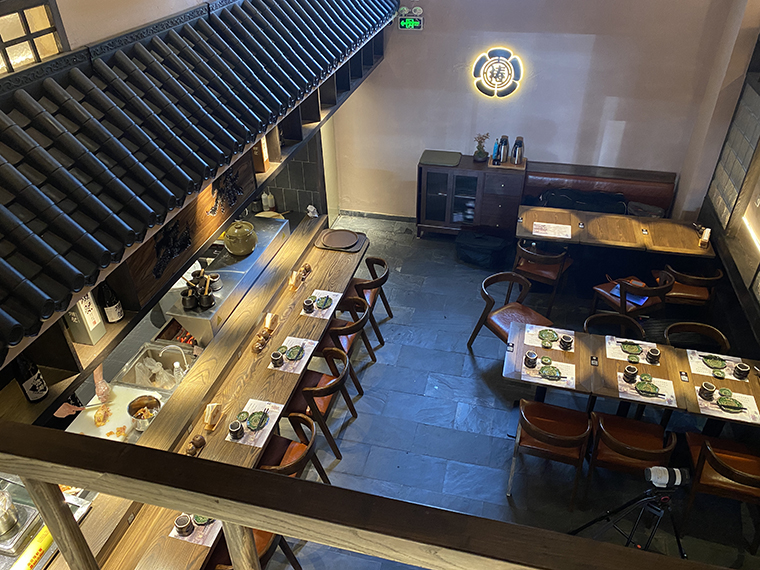 相对于其他日本料理,温暖治愈有烟火气的居酒屋是打开心门的神奇钥匙。在这里,可以褪下面具,卸下防备,轻松肆意地喝酒聊天,大声谈笑,没有职场的烦恼,没有生活的琐碎,有的是伴随冰凉的鲜啤入喉部之后的片刻欢愉,有的只是一个释放自我的放空间。居酒屋的热闹感,烧鸟店的烟火气,京都老店的历史文化魅力,是品深设计团队重点突破的设计表达。